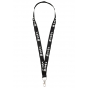 Šnůrka na krk se znaky Kickboxing je vyrobená ze 100% polyesteru. Je dlouhá 45 cm.